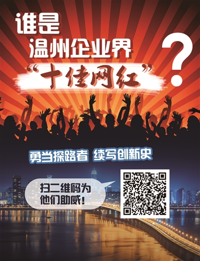 温商网讯(记者 施世潮)谁是企业界“十佳网红”?日前,“勇当探路者 续写创新史——我为温州代言网红大赛”企业界人士小组赛自启动海选以来,收到了近百名企业界人士的网络作品。今日起至8月30日,将进行企业界人士组“十佳”网红读者投票活动。