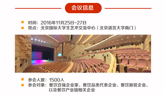2016中国餐饮互联网高峰论坛暨第五届餐饮产业大会由新华社全媒体、中国餐饮产业联盟、中国经营报联合发起,中网载线集团发现中国好项目联合举办。大会以“回归、共赢”为主题,旨在探索餐饮产业的走向,探索餐饮的风口,力求揭示餐饮行业及餐饮企业发展的本质规律。