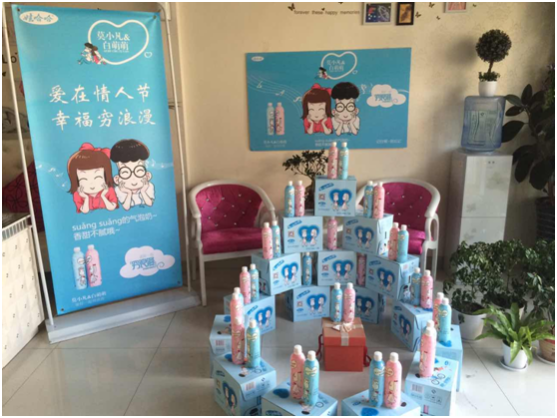 萌萌的人物,小清新的包装,让这个定位于恋爱人群的饮料一上市就获得了消费者的喜爱。莫小凡&白萌萌以健康饮品为产品出发点,将“爱的初体验”品牌理念融入到消费场景中,让消费者产生情感认同。