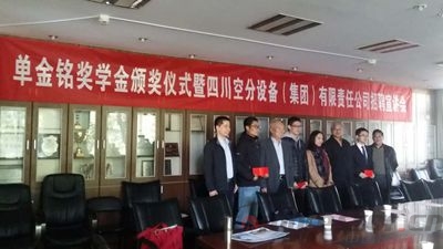 2016年11月中旬,(集团)公司董事长、总经理、党委书记单金铭连续第12年前往华中科技大学、浙江大学和西安交通大学发放“单金铭奖学金”并讲课,鼓励青年本科生、研究生、博士生献身低温事业,开发世界领先低温技术。