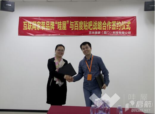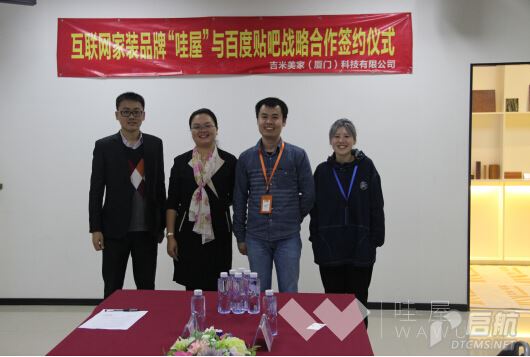 2015年12月14日,吉米美家(厦门)科技有限公司旗下品牌哇屋与百度贴吧正式签约,百度贴吧事业部总经理赖爱华、吉米美家(厦门)科技有限公司CEO黄清龙、百度贴吧事业部市场经理孙小冬、吉米美家(厦门)科技有限公司品牌总监林茜出席了签约仪式,预示着双方就百度贴吧家居装饰频道正式达成战略合作。