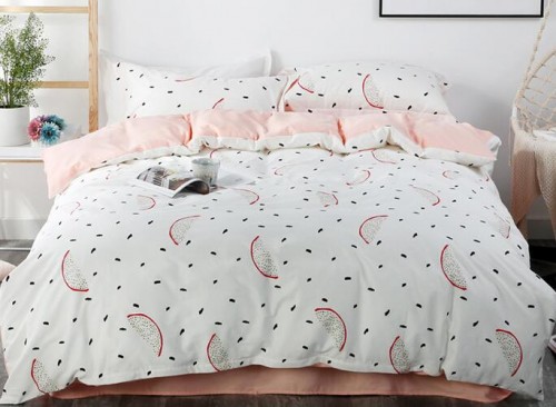在床上用品上印上食物的图案也是现在非常流行的。可奈雅的这款火龙果样式,简直让人看着就想扑上去,秋冬天睡在里面感觉都是甜甜蜜蜜的。