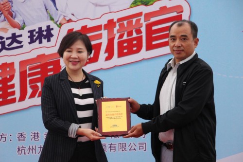 当天,九洲集团总裁九洲大药房连锁有限公司董事长齐丽女士出席活动并上台致词,对现场各位“小小健康传播官”给予了充分肯定和赞扬,更重申了“感冒戴口罩”健康理念的重要性。随后,香港幸福医药有限公司代表徐俊杰先生也为九洲大药房连锁有限公司颁上“最佳公益合作伙伴”奖牌,相信双方也将本着一颗公益的初心,继续做传播健康的使者!