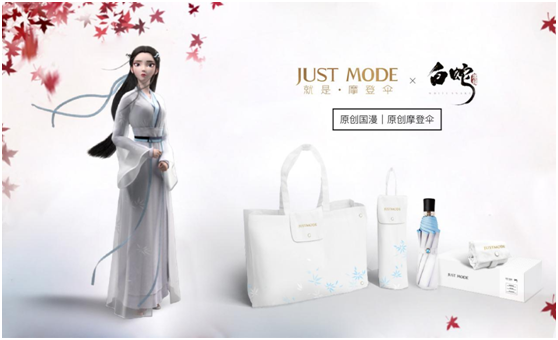 通过这次与《白蛇:缘起》的合作,摩登伞将经典白蛇形象搬到伞面上,让国漫文化与摩登时尚相互碰撞,将普通的雨伞从日常工具升级到时尚出街的配饰。而让每一把伞都有故事,是伞亦是配饰,一直是JUST MODE就是摩登伞坚持的原创理念。未来摩登伞将形成以时尚配饰为核心的潮流伞具,通过多领域的跨界破壁,与艺术家、明星、潮流品牌、二次元IP、文化元素合作,发现伞具的更多时尚基因,让更多人愿意带伞出门,形成一道独特的风景。
