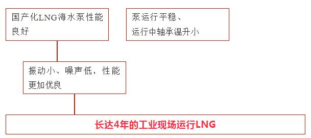 LNG海水泵与同工位运行的进口海水泵相比,水力性能和机械运行性能更加优良,总体技术性能达国际先进水平。