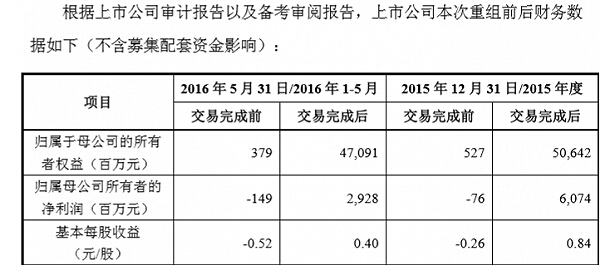 重组前后,上市公司的盈利状况也将得到较大改善。重组前,2015年度及2016年15月,*ST济柴净利润分别为7600万元和1.49亿元;重组后,同期净利润分别为60.74亿元和29.28亿元。