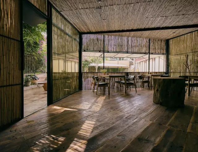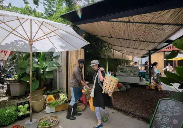 这里原本是一组被废弃的办公室,而今它被改造成了一个集合农场餐厅,农产品超市和集市的社会活动场所。餐厅的屋顶遵循大理古城的规定做成了传统的白族样式,整个亭子的立面用竹子包裹,起到过滤光线和增强形式感的作用。在他的作品中我们看到了用最朴素的设计找到与自然的关系。