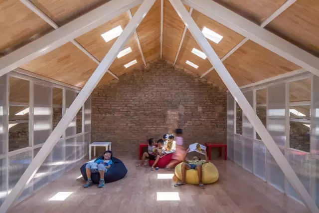 石塘村的“互联网小镇”计划,是今天中国乡村城镇化的一个缩影。在中国的传统乡村,大房子并不多见。基于对公社礼堂记忆的唤醒,才自然生产了两坡屋顶。而装配式的杆件解构则是对温室大棚轻钢解构建造类型的一个发展。这里除了起到会议的作用以外,也作为村民聚会民俗延续的一个场所。