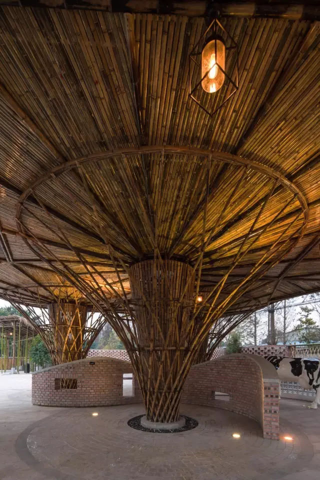 “竹园”位于城市周边典型的乡村环境中,是乳业企业的奶牛生产基地中植入亲子儿童园的“活化”项目,亲子家庭可以在这里体验健康牛奶生产链的源头,同时亲近自然和土地。竹,从古至今既用作器物,又被赋予人文情怀。竹材易得,生长周期快,便于加工。建筑师充分利用乡村手工劳作的资源,在传统竹工艺基础上探求当代的手工艺建造方式,希望通过竹建重构乡村生活、农业和景观建筑并满足。并满足当代回归自然的文化需求。