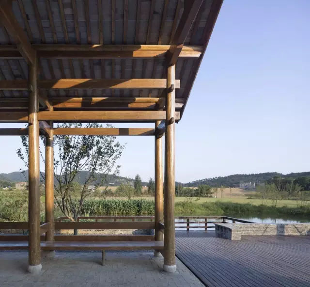 乡村铺子位于村口,在传统的乡村里,村口是村落和自然的分界点,有标志和分隔,交通组织,有休闲集会功能。通常村口要有棵大树,还有个亭子,村中有个广场,村边有宗祠和家庙,才能说是完整的村子。乡村铺的屋架采取了传统中国的木构做法,设计参考了皖南和婺源乡村的一些公共建筑形式,如路亭、廊桥等。所以这里可以算是一个回溯到传统江南文化里的公共空间。