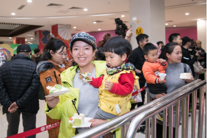 巨型蛋糕,闪亮登场 大牌生日会自然少不了蛋糕,12月22日世界之花周年庆2mx3m巨型蛋糕一亮相,惹得人们纷纷拍照分享,早早的排起了长龙等待蛋糕分享的时刻,现场千人排队领取蛋糕,场面十分震撼,当天16:00在主持人的引导下,现场响起了生日歌,由世界之花假日广场的领导共同切开代表着生日祝福的蛋糕,并与现场千名顾客分享,在美味之中共同庆祝世界之花一周年生日快乐!