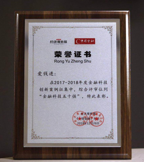 在合规基础上,成立4年多的爱钱进也不断寻求金融科技的创新与进步,用金融科技的力量助推平台安全与用户服务体验的升级与突破,更好地服务更多用户。此次荣获“金融科技五十强”称号也彰显着爱钱进在金融科技方面做出的突出成果。