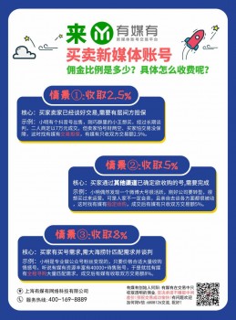 举个例子,如果你是买家,你通过自己的努力确定并知道你要收购的目标账号(3个以内且不是透过有媒有平台取得的),找到有媒有指定收购,谈妥后有媒有理应收取较低佣金点—5%。如果你通过任何方式跟账号卖家谈好了,为了交易安全仍然需要有媒有交易担保的,那么有媒有理应收取更低的佣金2.5%。如果交易金额较大或者是跟有媒有长期合作的客户,佣金比例还可能会更低。三种典型的交易情景的案例如下: