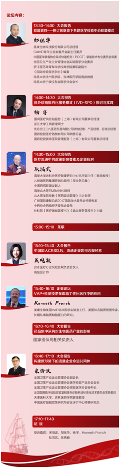 体外诊断流通企业是体外诊断产业的重要组成部分,是推动和助力产业健康前行的重要力量,在新的形势下广大体外诊断流通企业面临着新的挑战和发展机遇。无论是“二票制”还是集中采购,无论是新的运营模式还是新形势下的新发展理念,无论是供应链建设还是互联网创新,无论是社保与税务并轨收缴还是CRS都给我们带来了不少的冲击和思考。在新的形势下到底体外诊断流通企业未来的路如何走?为了引领广大流通企业的同道们更好前进,本届论坛邀请了业界大咖到会就业界共同关心的问题进行分享。