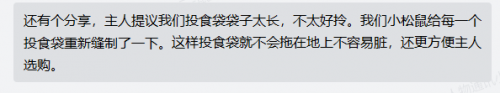 除了考虑到投食袋拖到地上会脏以外,细心的班班还观察到有一些小朋友会被带子绊倒,于是班班带着店内的小松鼠把投食袋都“改造”了一番。