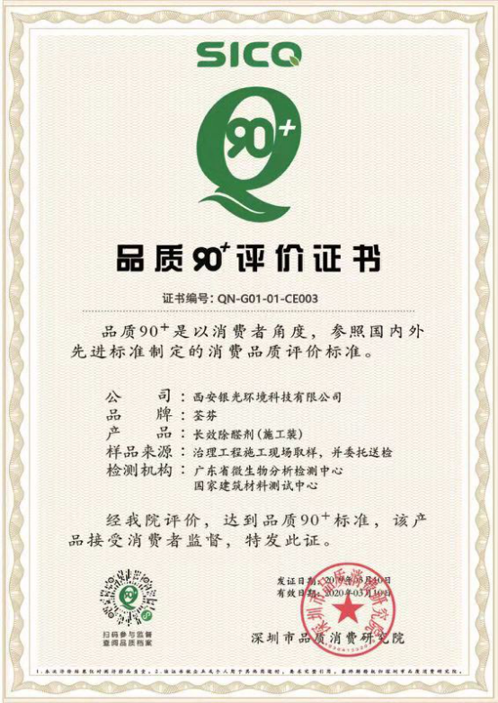 除醛实力获得权威验证,荃芬荣获“品质90+”认证