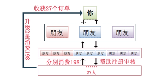 2、当你卖自己的产品或服务,同时发展三个一星商家,那么您就可以申请二星商家,您的直接推荐的商家升二星商家的时候,系统就会按最基本的三三发展规则,您的直属商家就有9个,他们每家都升级二星商家时,系统就会推送找你消费。有时为什么你到了二星商家没有九个消费商找你消费,那是因为你的直属商家没有提交升星,所以不要着急,认真做好服务和沟通,升级的一定会推送到给你(只要你升到二星商家以上)。
