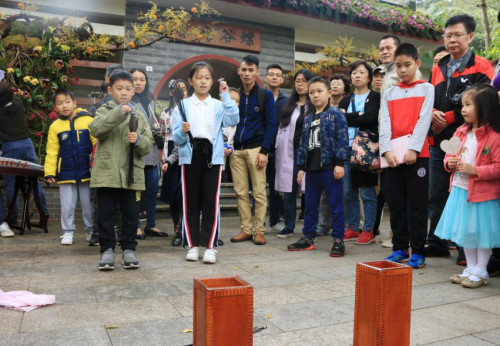 当天的活动高潮,则是一个名叫“投壶”的游戏。“投壶”是源自古代士大夫宴饮时做的一种投掷游戏,在秦汉时期尤为盛行。此次结合花展期间的“汉文化卉萃”主题活动,再现这种来自古代的游戏。游戏简单且极具竞技性和趣味性,迅速点燃了观众们的热情,并引起了游客们的强势围观,游戏也在一阵欢乐的氛围中,让现场的人们感受到了汉文化艺术的乐趣所在。