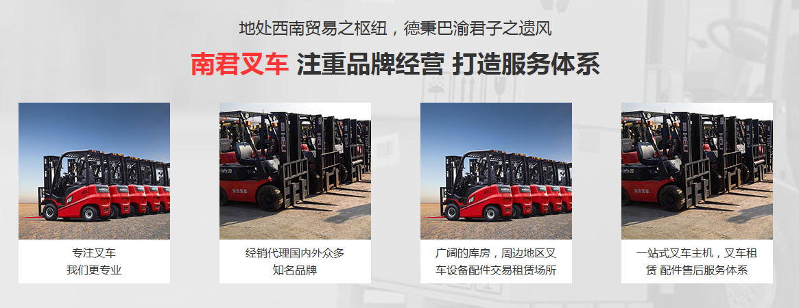 重庆南君销售有限公司立足行业发展需求,专注叉车机械设备,是一家专业性、综合性极强的叉车服务公司。南君公司形成了一站式的叉车服务体系,可以为客户提供叉车销售、叉车租赁、叉车配件、代办叉车证、叉车上户等服务。