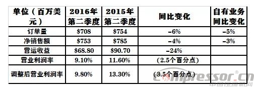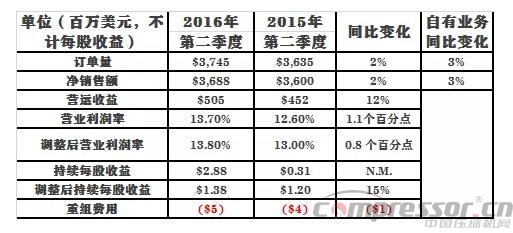 英格索兰公司刚刚发布的第二季度业绩中表示:压缩技术和服务相关的自有业务销售额有低个位数下降。设备订单量有中十位数下降,而服务订单量则实现了约10%的增长。