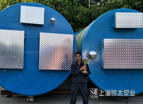 而随着近代社会的发展和人们环保意识的高涨,,我国的环境保护事业的重要性越来越凸显。上海凯太泵业公司积极面对新形势、新任务、新要求,以强烈的责任感和使命感,不断把环保设备智造工作做深做实,加快形成科学合理、优质高效的产品体系,助推我国环保事业蓬勃发展。在一体化预制泵站的设计生产中,上海凯太倾注了大量的心血和人力。传统的消防泵站采用平摊式布局,不但占用了大量宝贵的土地,还存在很多弊端,如:可靠性低,地下室环境潮湿,易腐蚀,断水时需排气,使用寿命短等。而上海凯太针对这一情况研发了一款新型的节能消防供水设备“地埋式消防一体化泵站”,将水泵和泵室放置在水箱中且固定在一体化泵站专用的模块上,通常情况下只占用0.5~1.5m的水箱容积,能够充分利用地下立体布局,减少了对建筑本体的空间占用,大大节省了空间。且该泵站采用的是全密封的消防专用潜水泵,防冻裂,不需引流,不需排气,设备耐腐蚀,运行时低噪节能,可靠性高,等优点。由于采用装配式不锈钢水箱,改变了以往的焊接方法,采用螺丝装配,适用性强,安装、移动、拆卸方便,使用寿命长。凯太提前富有远见的预先留有接口可支持远程传输、自动清洗、杀菌、消毒,升级简便。正是凯太产品有着如此多的优点,大大提升了凯太的市场占有率和凯太名牌的美誉度,让凯太成为了行业的领航者。