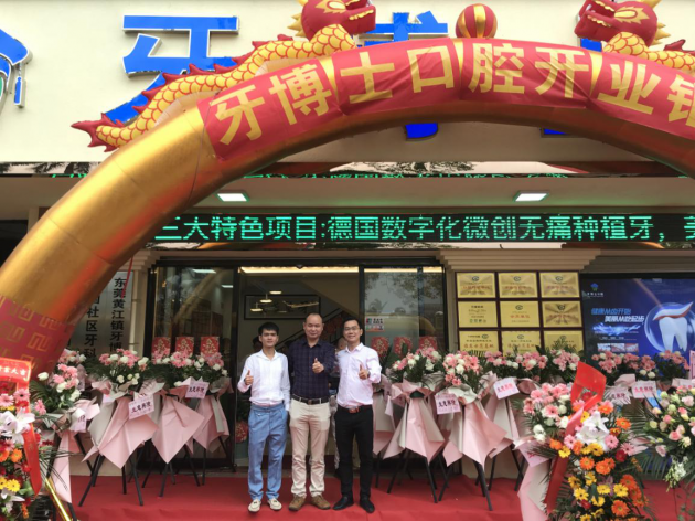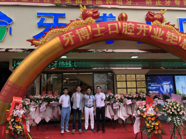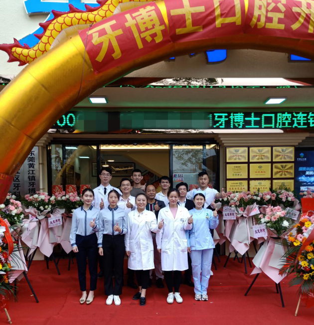 2019年5月5日,阴天,微风,25度,东莞市黄江镇黄江中学大门口正对面迎来了一场特殊喜讯:牙博士口腔连锁机构(黄江分院)在这里举行盛大的开业庆典,同时给黄江镇人民带来了两个看牙特大好消息,在黄江镇举办“黄江牙博士口腔惠民看牙健康大行动”:(一)面向黄江镇寻找100位缺牙的中老年人,对每一位缺牙的中老年黄江牙博士口腔赞助4000元种牙,40万元种牙基金送完为止;(二)面向黄江镇寻找100位牙齿不整齐、牙突、龅牙、反咬合的青少年人,对每一位牙齿不整齐的青少年黄江牙博士口腔赞助6200元的矫正费用,62万矫正基金送完为止。黄江牙博士口腔运营主任、牙科运营鬼才唐涛老师,“箍牙矫正天使”叶木林、“广州种植好牙医”种植牙专家魏楚升、“美容牙修复天使”靳亚龙、“百姓护牙天使”从琳、“活动牙佬”叶生、大岭山牙博士詹院长、东莞永嘉义齿董事长胡永国、牙博士口腔连锁(黄江分院)董事沈浩祥、贾豪辉、薛佳威等出席参加活动。