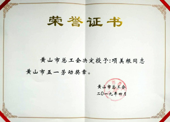 2019年4月30日上午,黄山市市委市政府在市委党校礼堂召开了“比创新、比创造、增动能”专项行动推进会暨“五一”“五四”表彰大会。会议由孔晓宏市长主持,任泽锋书记出席并做主旨演讲。黄林沐副书记宣读表彰名单,其中五十七位获五一劳动奖章,黄山良业智能控制股份有限公司项美根董事长位列其中,获此殊荣。
