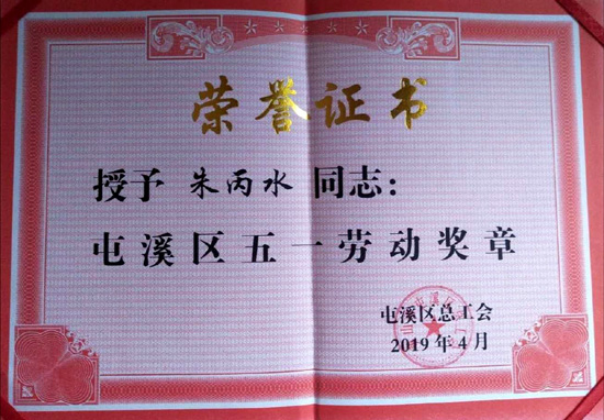 2019年4月30日下午,屯溪区委区政府在政府礼堂召开了“屯溪区庆祝“五一”国际劳动节暨表彰大会”。黄山良业智能控制股份有限公司朱丙水荣获五一劳动奖章。