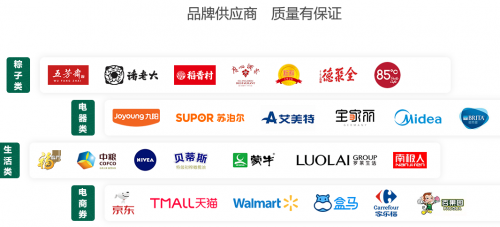 提供100、150、200、300、500 共5档标准套餐,企业可以根据预算自由选择;可为企业定制任何档位的套餐,亦支持实物团购,形式灵活,满足不同企业的多样需求。每档标准套餐提供十大品类共100多款精选商品,涵盖粽子礼盒、休闲零食、粮油干货、家居日用、实用小家电等,还有多款超值电商券,员工可自由兑换礼品。