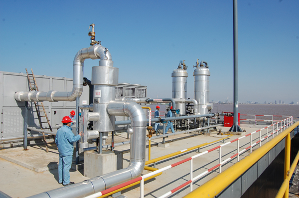 ??????? 上海石化在化工码头投建的油气回收装置,可以防止装卸中油气散入大气。