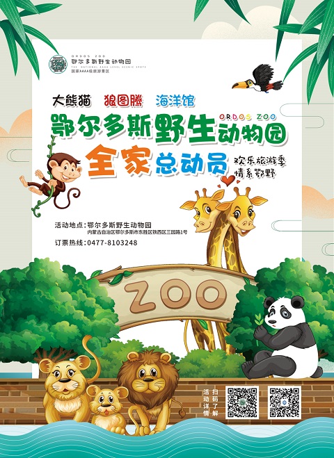 “中国王牌野生动物园”,鄂尔多斯野生动物园——“猎奇”、“探险”、“狂野”、“动感”、“追击”、“神秘”、“萌宠”、“草原生态彩虹”、“看草原VS海洋公园奇幻之夜”、“草原VS大熊猫七巧七喜”、“狼图腾·草原守护神的神秘故事”、“草原长颈鹿的故事”、“野生动物的音乐世界”......开启全家欢乐旅游季。