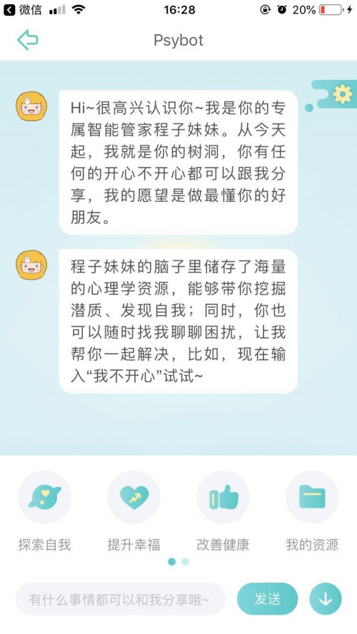 “Psybot身心健康智能管家就像老师一样,悉心呵护学生的心理健康。”据连信科技相关项目负责人介绍,课程格子中的格子BBS上,有很多学生发帖诉说他们的困惑或烦恼,但论坛回帖具有延时性,且回帖者大多为非专业人士,导致很多学生的心理健康问题无法得到及时解决。智能管家Psybot则像贴心的老师一样,随时答疑解惑,让学生免去提问的后顾之忧。