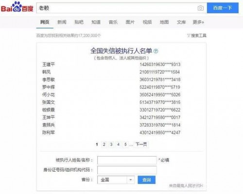 在网上搜索“老赖”两个字,你就会发现一长串“全国失信人被执行名单”。