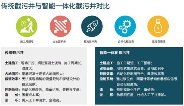智能一体化截污井主要是由井筒、截污闸、排水闸、污水提升装置、液位仪、雨量计、格栅、云监控平台等设施组成的。