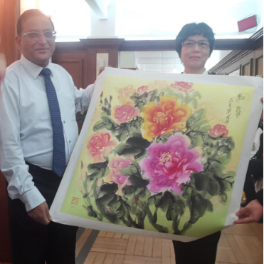 会后,中斯双方就此次会晤圆满结束互赠礼,由“国内牡丹第一人”中国著名书画家叶君萍女士所创作的《春色满园》、史初弘霖董事长潘文浩(David)先生所带来的由台湾陶瓷艺术大师陈威德先生所创沙微谷茶器金玉烧窑变、中国竹酵素之父陈立新所研发的珍贵生态竹纤维养生品作为礼物互赠,用以叶君萍女士的书画作品所表达的“顺达繁荣、百花齐放”之意祝愿两国在“一带一路”倡议中共创辉煌。斯方用银盘作为回礼,代表中斯两国诚意合作、砥砺共赢的心愿。