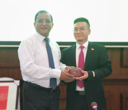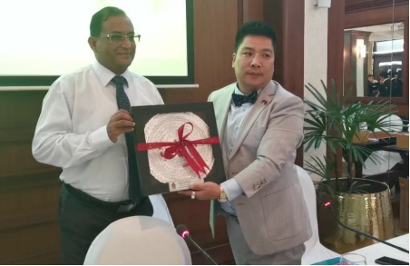 (图为史初弘霖董事长潘文浩(David)先生与斯里兰卡副总统赠礼留影)