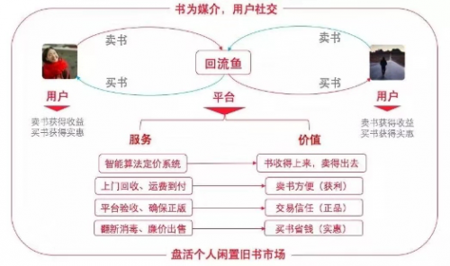 这种模式形成了一个良性循环:一个人手上的闲置旧书,能够得到解救,通过回流鱼,流转到另一个需要的人手上,这个人看完,又可以再次通过回流鱼,流转到下一个人手上,旧书得以循环使用,一次次重获新生,既环保,又有温度。