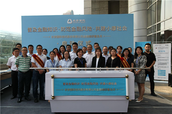 长安信托股份有限公司为落实“一行两会”关于金融知识普及月活动的要求,于9月6日在高新国际商务大厦广场举办了以 “普及金融知识 防范金融风险 共建小康社会”为主题的金融知识普及月启动仪式。长安国际信托公司领导、消保办、各部门消保专员及发行部门员工代表出席本次活动。