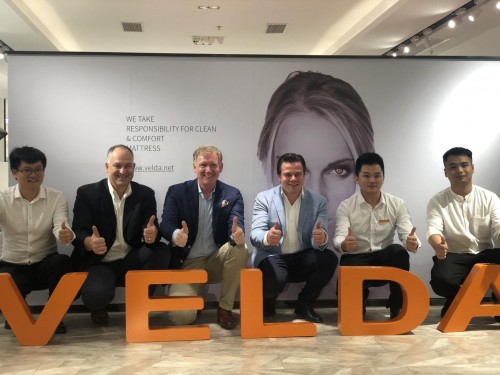 10月11日,Veldeman集团总裁Philip、全球营销总经理Geert、亚太地区营销总经理Johan,到访Veldeman亚太地区营销中心深圳市中比卫达科技睡眠有限公司,与VELDA亚太地区营销中心总经理李绍中会面,双方对2019年欧洲卫达床垫在亚太市场的发展情况进行了总结及探讨VELDA下一步在亚太市场的战略发展方向。