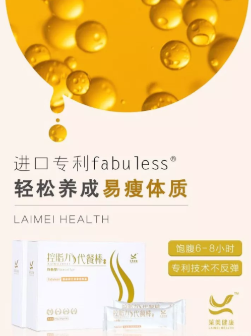 Fabuless是一种专利乳液,由两种天然存在的膳食脂质,即纯化棕榈油和纯化燕麦油制成,独特的乳液系统延缓了胃肠道中油的消化,?“在小肠(回肠)中,食欲控制系统被触发(回肠刹车机制),向大脑持续发送饱腹信号,消耗身体脂肪并且能防止减食后体重反弹。轻松饱腹68小时不怕饿。于此同时一根代餐棒仅有106大卡的热量,饱腹感却相当于三碗米饭!持续饱腹、减少身体脂肪、防止体重反弹如此一来,赶上加夜班既不用饿着肚子硬抗,也不用担心容易长脂肪,来一根莱美控脂力代餐棒美滋滋!