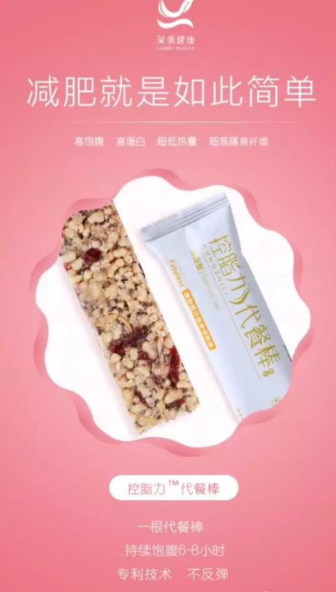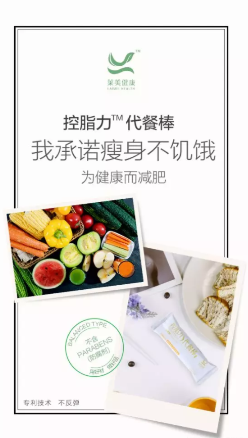 莱美控脂力代餐棒坚持纯植物配方,无奶油、巧克力涂层拒绝高热量成分早上来一条,轻松管饱?68小时!营养均衡拒绝贫血低血糖,莱美控脂力不仅仅是低卡饱腹,更重要的是它小小的一根中竟然拥有多种果蔬的营养成分。