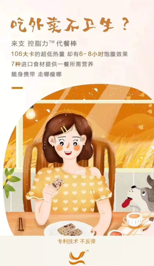 控脂力代餐棒不偷工减料,维护内心秩序。目前市场上的代餐品牌繁多、鱼龙混杂,有的选料低劣,配比失衡,而控脂力代餐棒选用进口食材,光是成本就比市面上其他代餐产品高30%,于此同时增加了专利技术fabuless,跟别的产品饱腹感有所不同,其他是水饱或者拉肚子,但是控脂力选用了fabuless可以达到真正的缩胃和调节饮食的功效,拒绝减肥后反弹,养成真正的易瘦体质