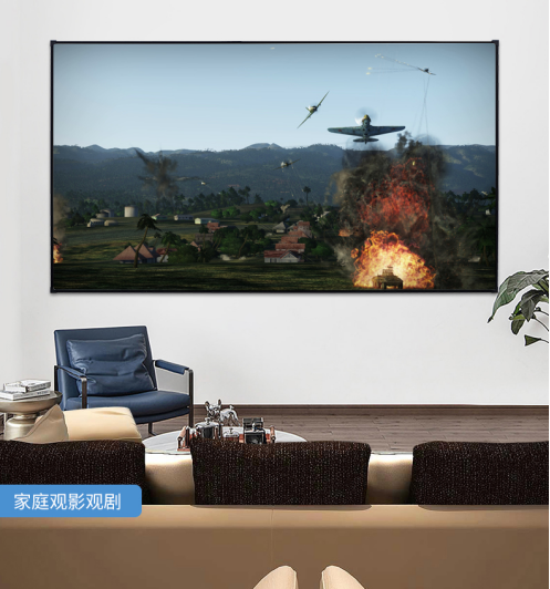 云龙佳采用反射光原理的光学幕布,让3D影像更加逼真,细节清晰显示,给您身临其境的震撼视觉体验,即装即用,非常适合用于家庭影院、看剧追剧、酒店院线、商务讲座等场景。