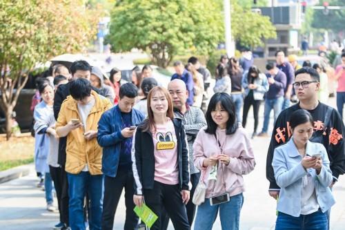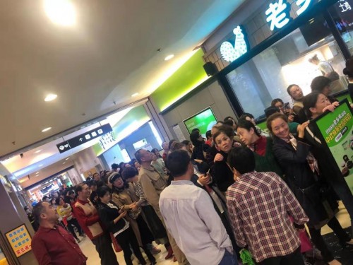 上午9点左右,部分店面门口已经出现了排队客流。更有甚者,表示早上8点不到就已经排队。到上午10:30左右,在汉口火车站,循礼门、中南国际城、京汉商业街等门店,早已人山人海;在循礼门店,队伍绕了好几圈,工作人员不得不组成人墙维持秩序。