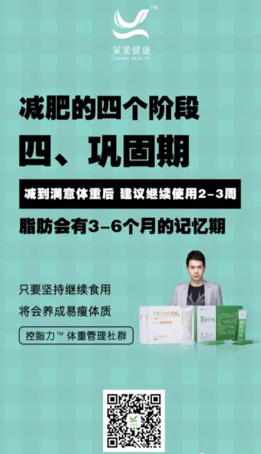 使用代餐会反弹吗? 减肥反弹的原因是你在减肥时用了不正确的方式,使得身体的基础代谢下降,一旦恢复正常饮食,体重就会迅速反弹。 而控脂力代餐棒含有一顿正餐所需的营养素,能保证人体正常代谢所需要的能量,避免肌肉流失,维持基础代谢率,于此同时专利技术fabuless也可以有效地延长饱腹时间,改善健康的饮食结构,养成真正的易瘦体质,进而使得减肥之后不易反弹。 控脂力代餐棒瘦身安全吗? 我们的代餐棒是纯植物提取非常安全,与此同时利用物理挤压的原理制成,保留了食物最初的营养并且有饱腹感的同时,还能减少脂肪的吸收。避免肚子饿,抵挡不住食欲的诱惑,摄入过多热量而导致发胖。 想要健康瘦身 除了控脂力代餐棒外 希望大家搭配一些低热量水果、蔬菜以及瘦肉 另外适量运动 瘦身效果更好、更健康 但是要想减肥成功,这4个阶段一定要掌握好 放眼望去 那些红得发紫的女星们 哪一个不是瘦成一道闪电 才驾驭了各种风格 然后就斩获了你的老公们 所以,亲爱的你们 想瘦身的看过来 为瘦身折腾过但没瘦下来的看过来 这次绝对不会让你失望 控脂力代餐棒,让你重新对减肥燃起希望