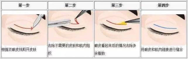 双眼皮切开法,顾名思义就是用锋利手术刀按设计的重睑线切开皮肤并剪下,分离眼轮匝肌暴露睑板,剪去一窄条眼轮匝肌和多余皮下组织。用通俗的话来说,就是在上眼皮上切口且取走适量的肉,随后进行缝合,消肿后进行拆线就能达到双眼皮的效果。