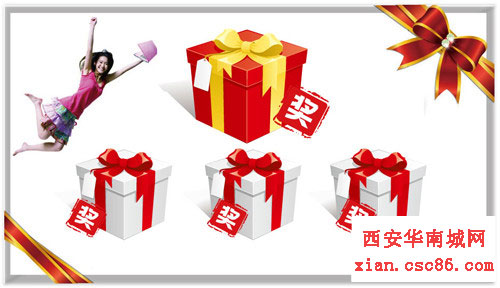 只要您现场下单,即可参与抽奖,百分之百中奖,神秘大奖等您拿!同时,拍现场图3张+购买商品,分享到微信朋友圈/QQ空间/新浪微博,并写下购物体验心得,截图发送到西安华南城网微信公众号,即可获额外精美礼品一份。