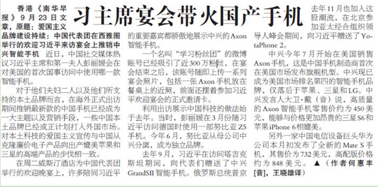 22日,“中美省州经贸合作研讨会”在西雅图举行,这是中美商务部以及华盛顿州政府联合举办的高规格研讨会。环球时报指出,在宴会上中兴AXON天机与习近平主席的正式邀请卡摆在一起,疑似习主席专用手机。另据香港《南华早报》报道,本次随习主席出访的中国高层代表团使用的手机也确认为中兴AXON天机。既然能成为中国代表团访美期间的专用智能手机,AXON天机到底有什么秘密武器呢?