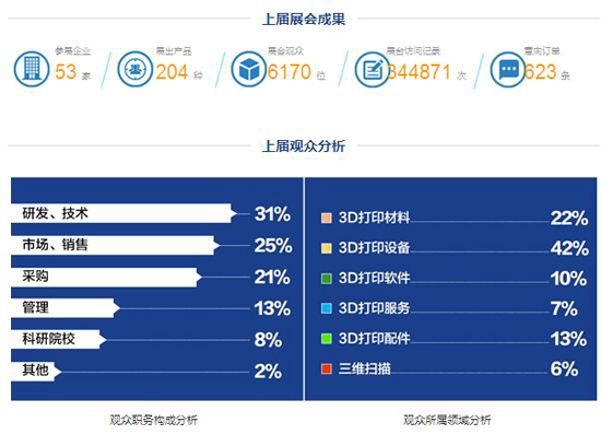 2015年12月8日9日成功举办的“2015中国3D打印在线展会”充分地体现了“互联网+展会”所带来的变革。本次展会共吸引53家国内外知名企业参展,展出产品200余种,超过6000名观众现场参展,展台访问记录高达344871次。除此之外,更加难能可贵的是本次在线展会意向订单也达到了623条,可谓开创了“互联网+展会”的先河。