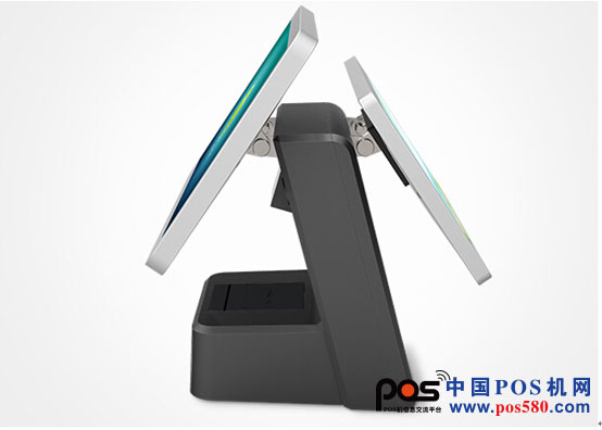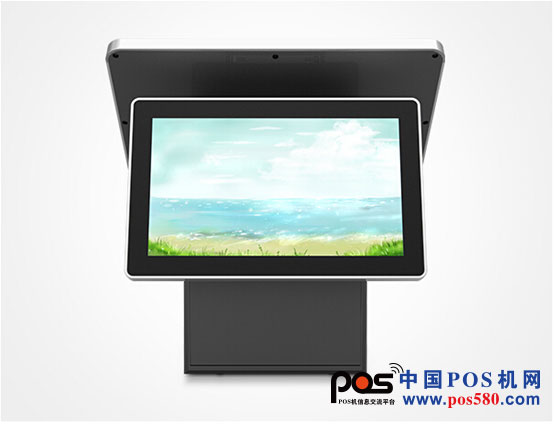 商通POS80收款机带高分辨率电容触摸主副双屏,主屏为13.3寸,副屏为10.1寸,可实现异步或同步显示,让收款信息一目了然;采用黑色加灰色机身,显得大气靓丽,且盖封隐藏接口设计使机器外观简洁美观,易于拆卸,液晶屏还可多角度调节,应用起来十分灵活。